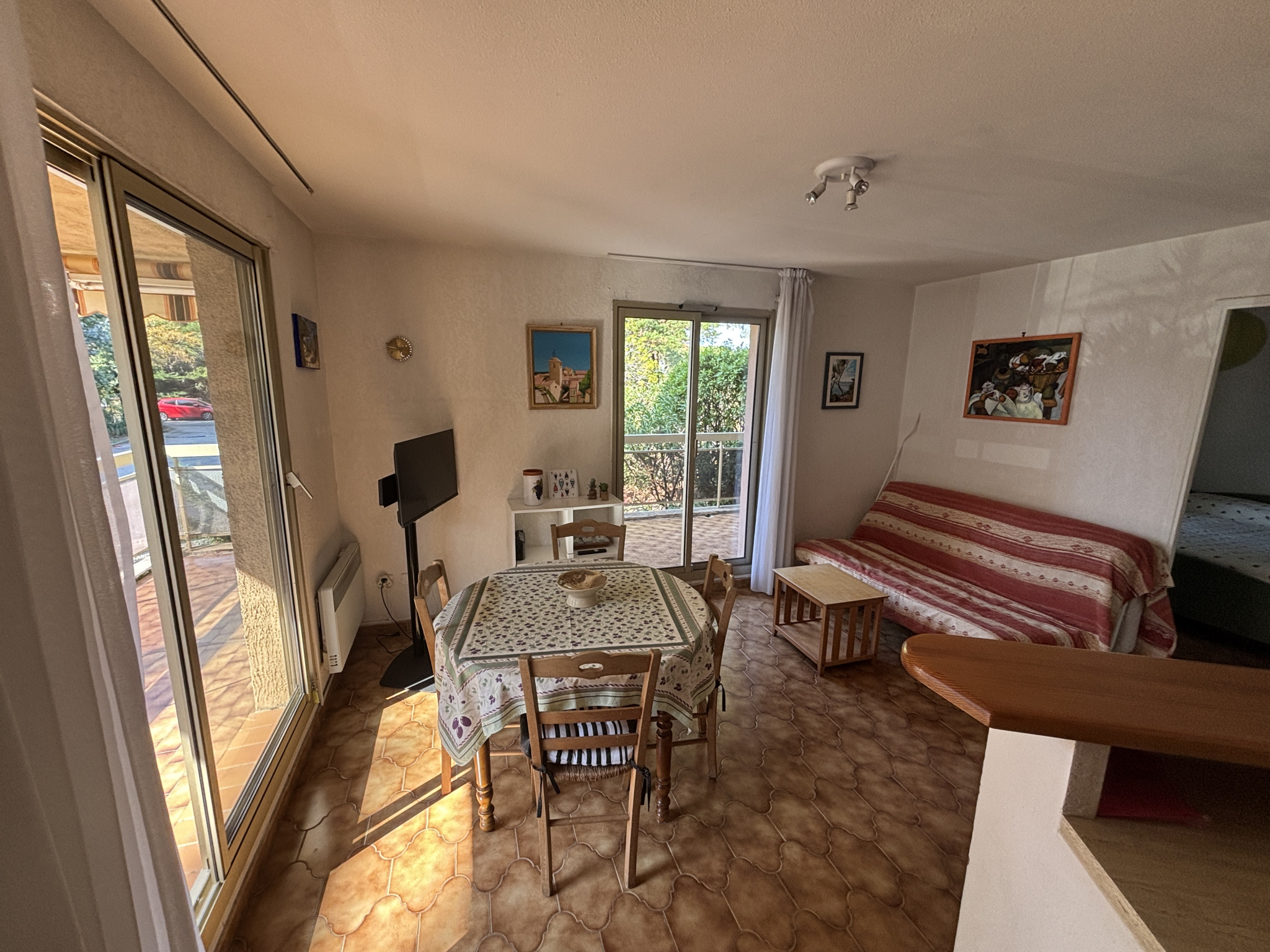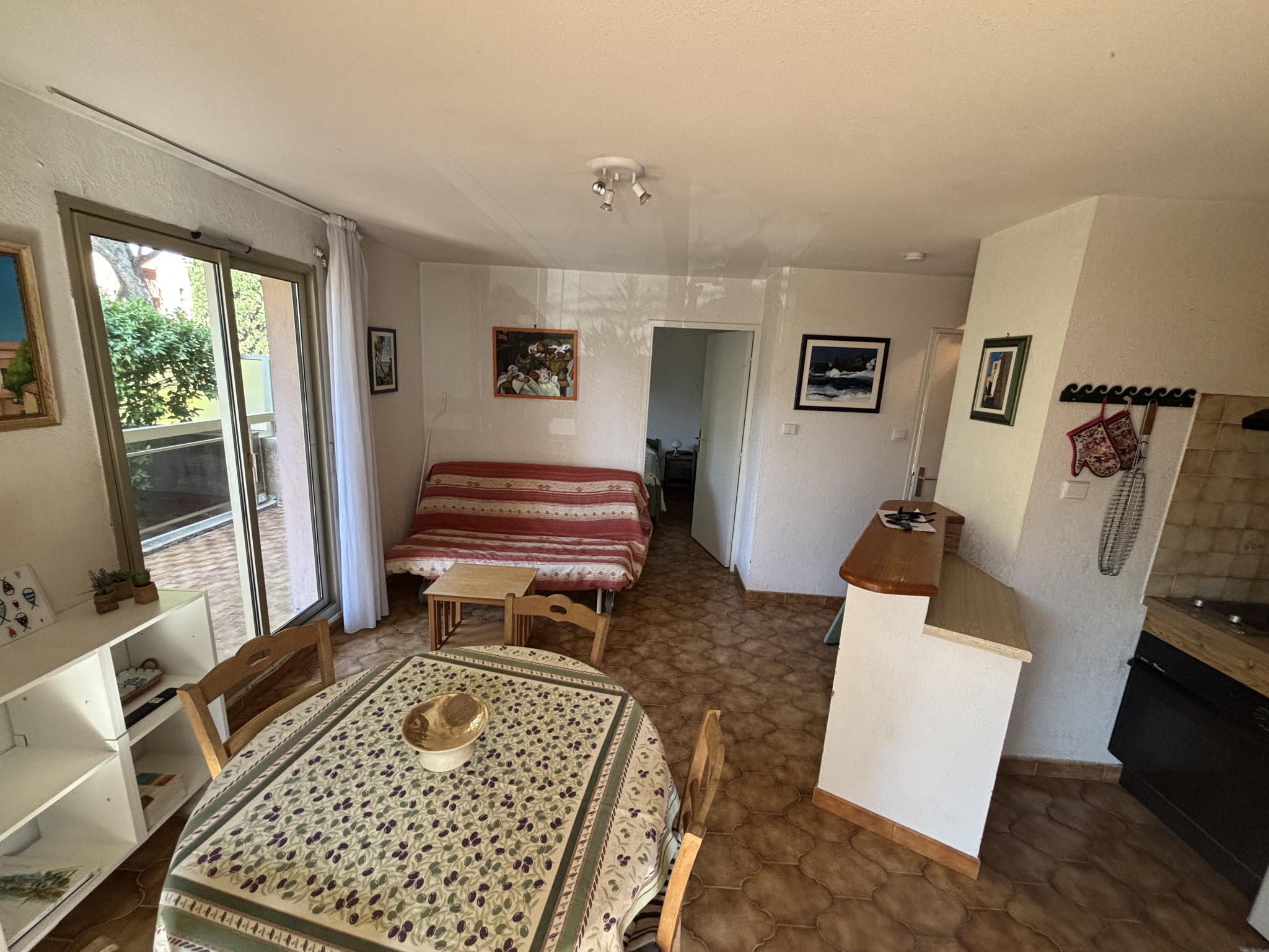 Au coeur du port, au calme, dans résidence fermée , rare T2 avec vraie cabine de 37 m² env., terrasse de 21 m² env., en rez-de-chaussée, expo ouest, garage.